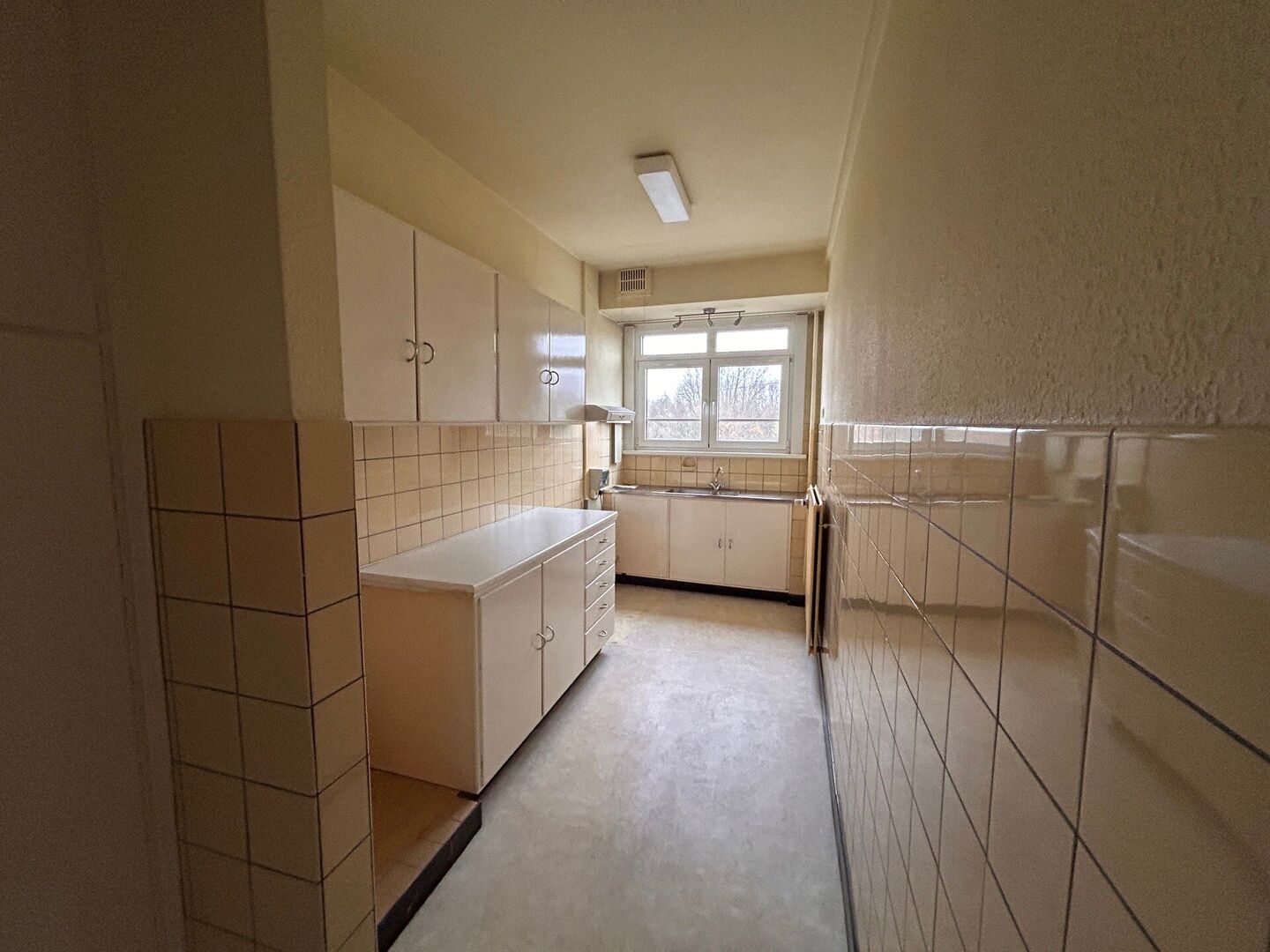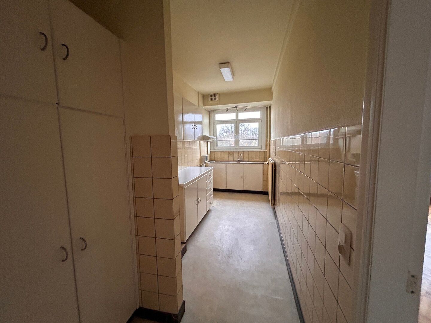 Welkom in dit lichtrijke appartement, heldere leefruimte met een goed onderhouden parketvloer, decoratieve openhaard en zicht op groen.