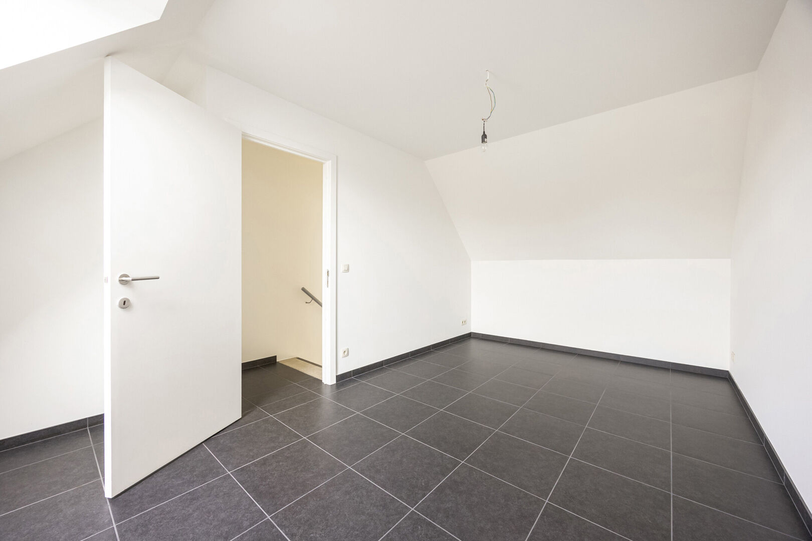 Via de vaste trap bereikt u de tweede verdieping. Deze zolderkamer is verrassend ruim en beschikt over een Veluxraam die volledig open kan en doorgang biedt tot het terras op deze verdieping.