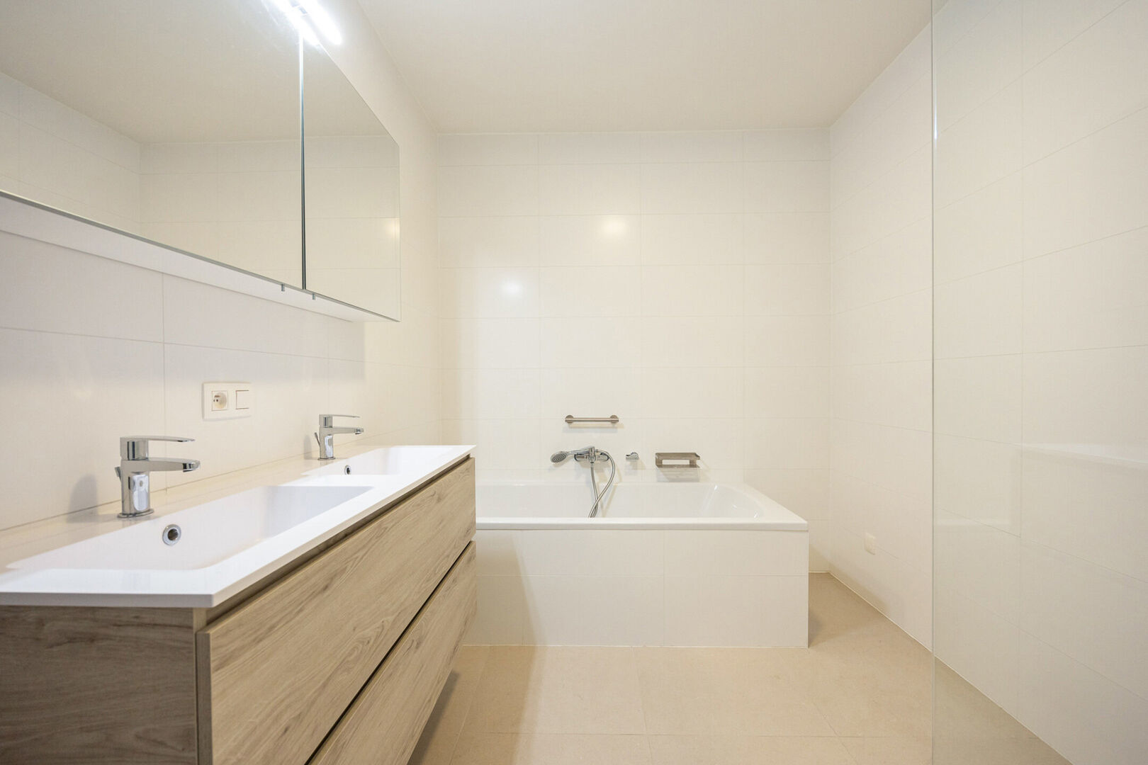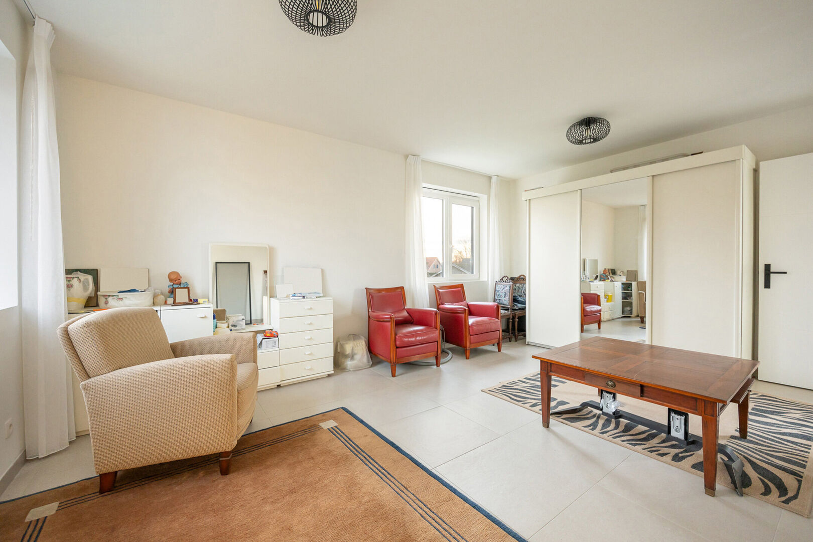 Op de eerste verdieping bevinden zich drie volwaardige slaapkamers waarvan een master bedroom met dressing, een apart toilet en een comfortabele badkamer met zowel een ligbad als een aparte inloopdouche en dubbele lavabo in meubel aangevuld met een spiegelkast.
